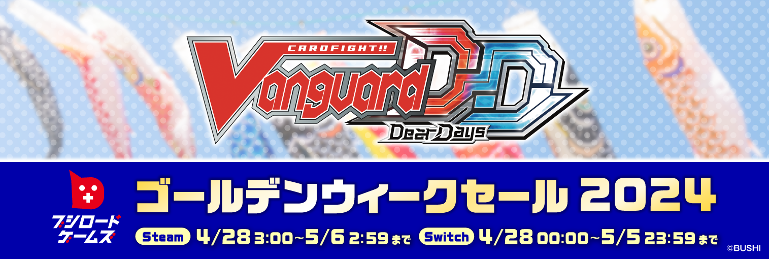 Steamストア、 ニンテンドーeショップ にて、カードファイト!! ヴァンガード ディアデイズ(DL版)のセール「ゴールデンウィークセール 2024」を開催いたします。
